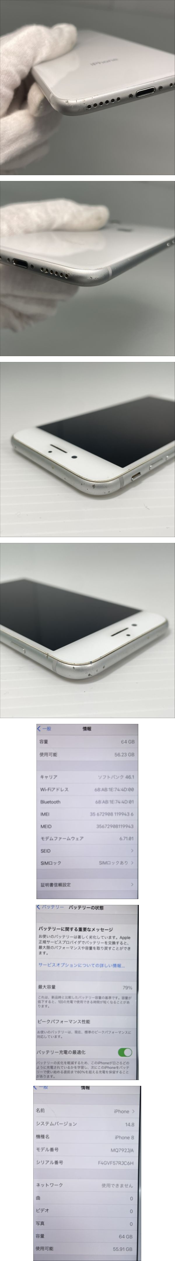 > 2603M4202 Apple アップル iPhone8 MQ792J/A 64GB IMEI Softbank系:〇判定 SIMロック有 通電確認済 シルバー
