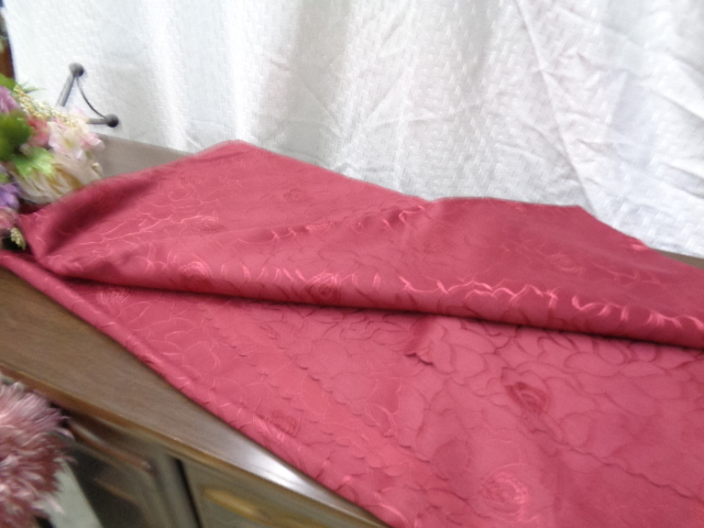- 高級テーブルクロス ホテル使用 大判丸型290 花柄織込刺繍 レッド クリーニング済