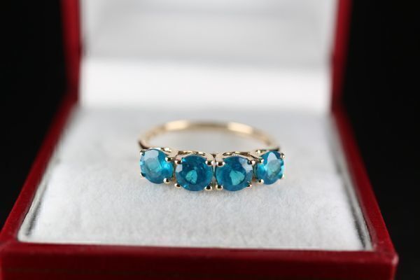 - 絶品 英国 イギリス ゴールド リング 指輪 9ct 天然 アパタイト ビンテージ 純金 純金率 375 宝石 ジュエリー 鑑定書 J94