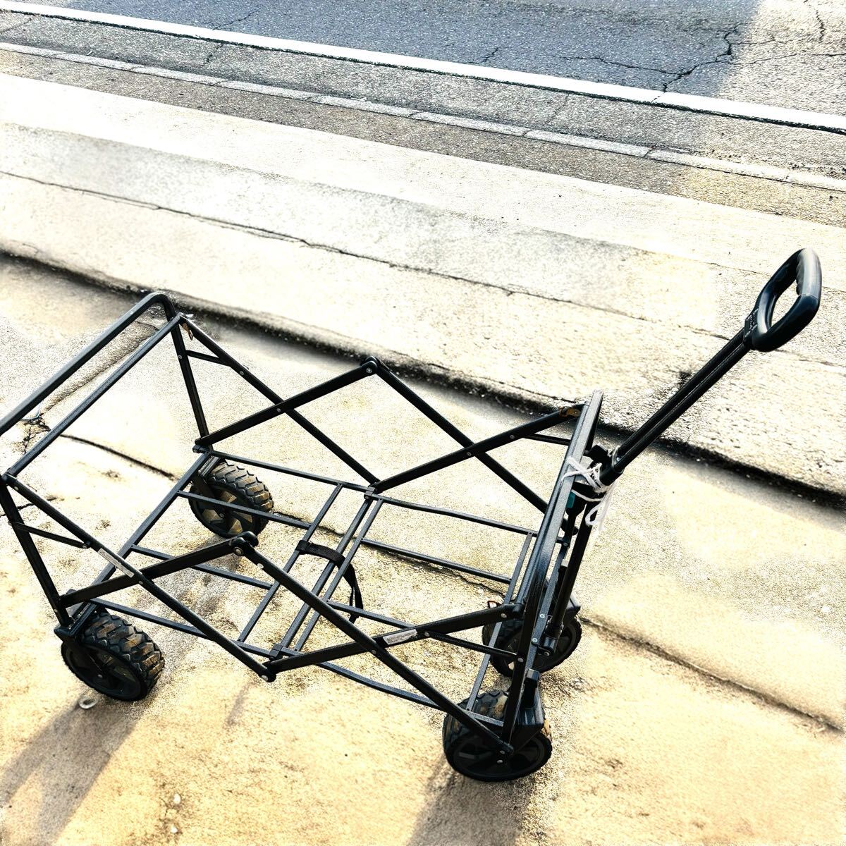 - ★D アウトドアワゴン キャリーワゴン 台車 折りたたみキャリー 4輪大型タイヤ コンテナ収納 軽トラ積載 運搬カート ジャンク品 S-573