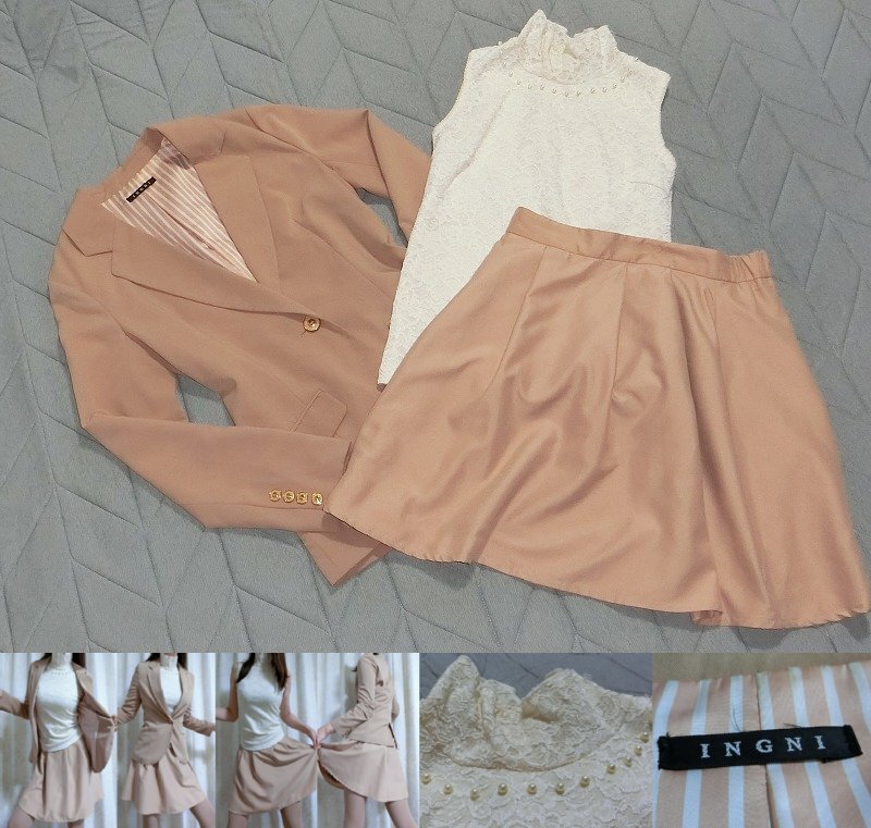 - p5★清楚な③点セット★ジャケット&ハイネックレースインナー&フレアミニ