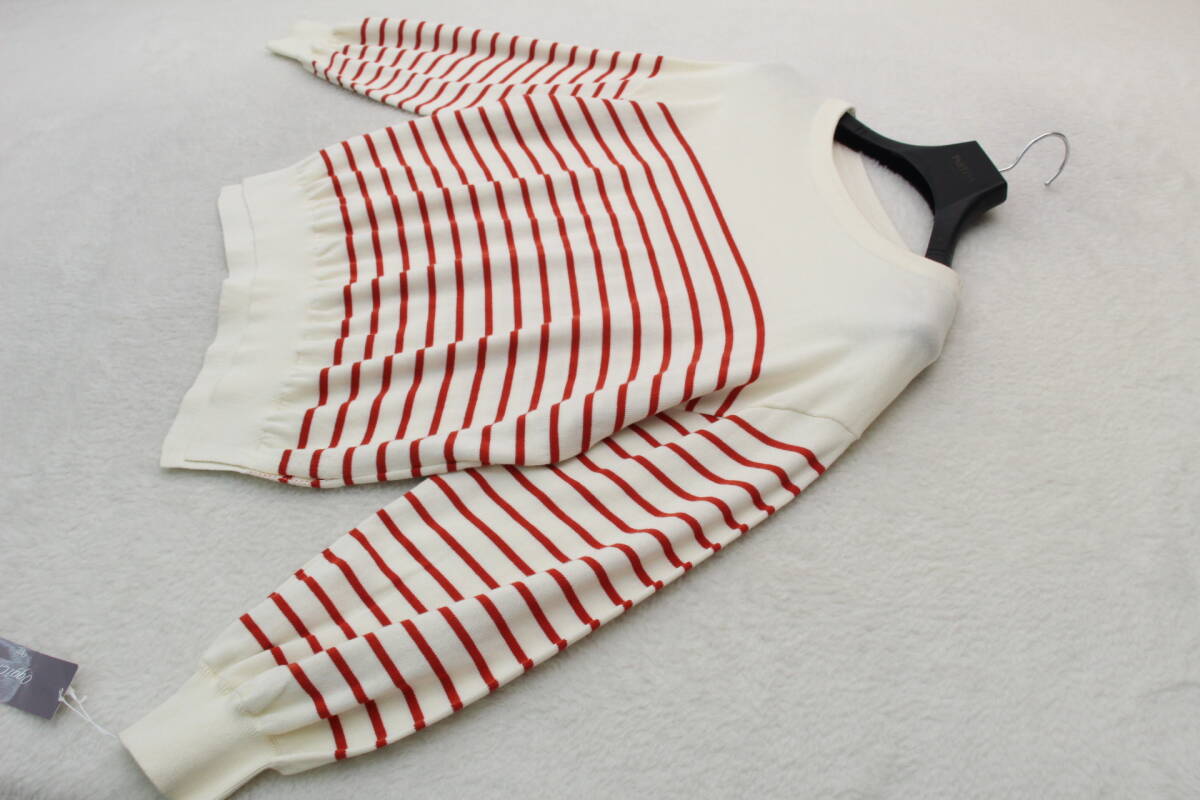 - 1565 新品タグ付き ボーダーコットンニットカットソー 定価¥17,380税込み