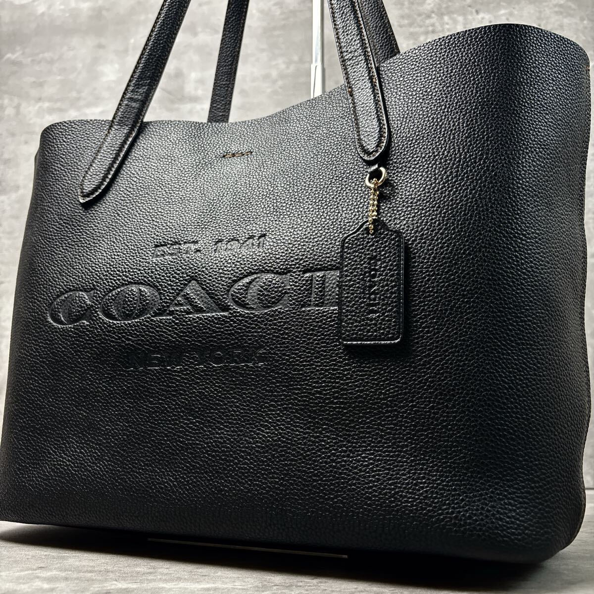 > 現行近《極美品/大容量》 COACH コーチ メンズ トートバッグ A4 肩掛け ビジネス 紳士 通勤 キャメロン オールレザー 本革 ブラック 黒