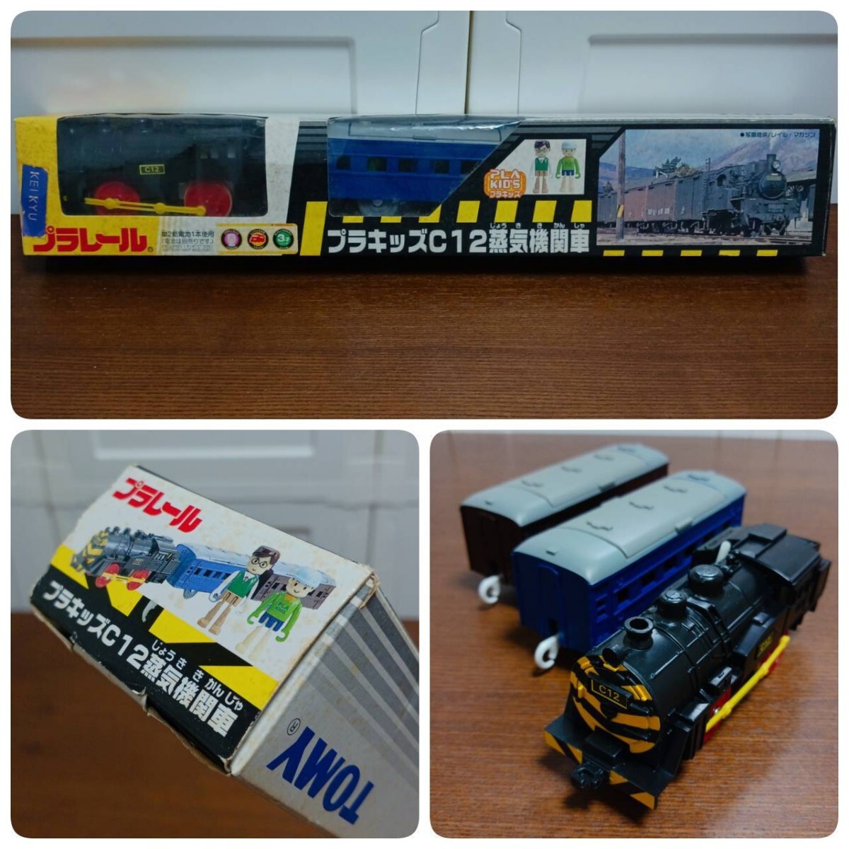 - 《1円〜》動作品プラレール プラキッズ C12 蒸気機関車 TOMY 旧パッケージ 開封済み未使用 絶版 レア 1円スタート SL 客車付