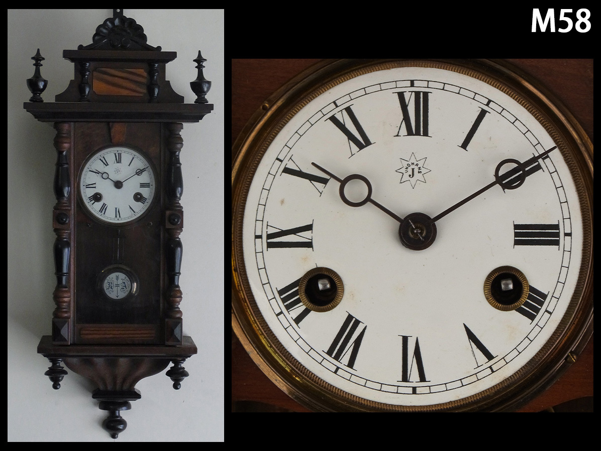 - M58☆大正期 Jマーク社製 スリゲル式 柱時計/Junghans ショートユンハンス 掛時計 黒柿 可動品