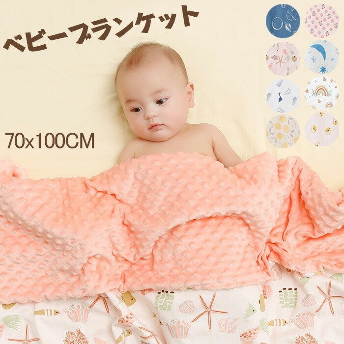 > ベビーブランケット 赤ちゃん毛布 ブランケット 新生児毛布 赤ちゃん用 綿毛布 子供掛け毛布 両面デザイン 防寒 70x100cm ☆8色選択/1点