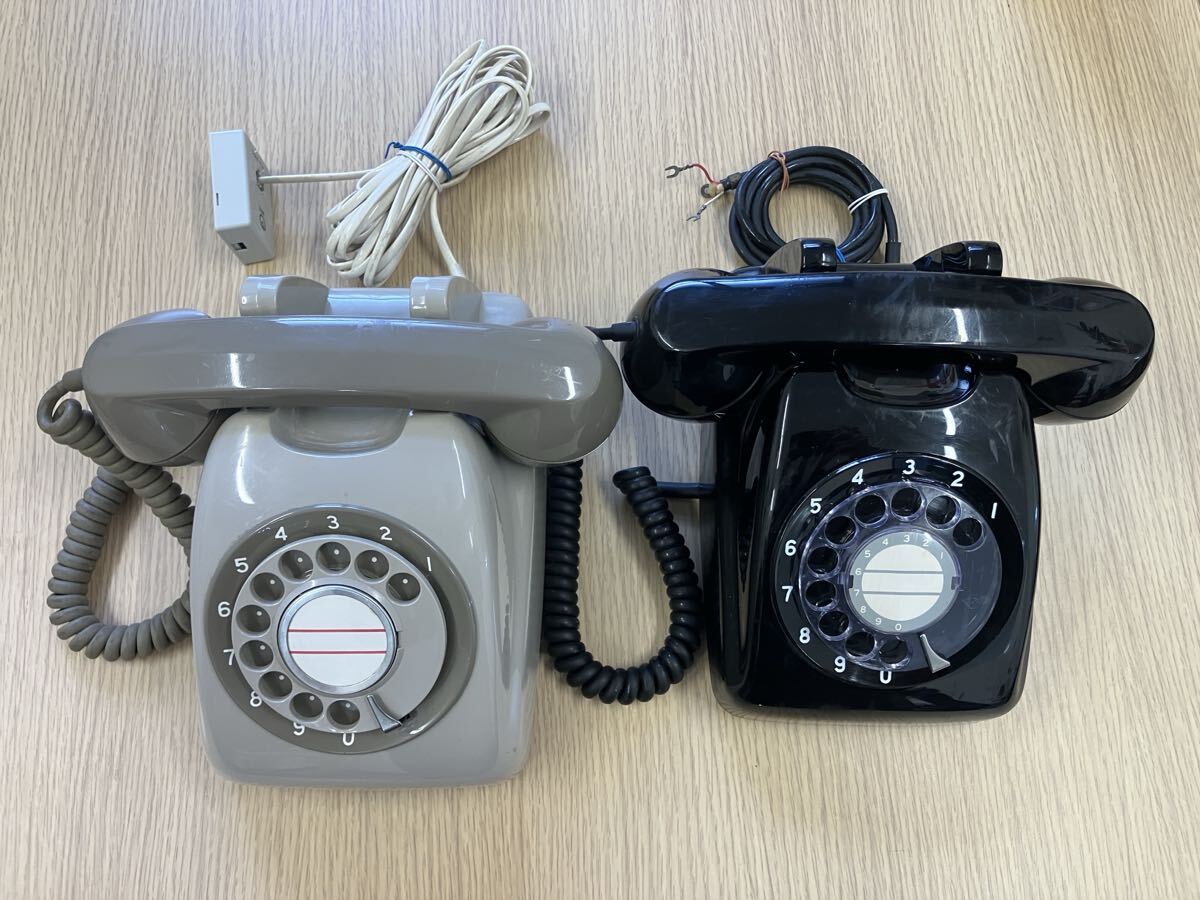 - 昭和レトロ 黒電話 600-A2 グレー電話 2台セット 日本電信電話公社 ダイヤル式 電話機 アンティーク ジャンク 【63-3-3】