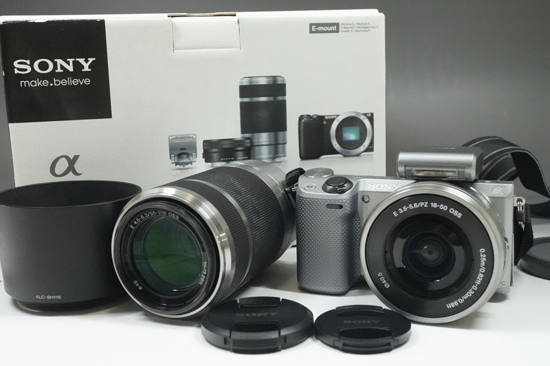 - 1円~【C711】SONY/ソニー α NEX-5R シルバー E 3.5-5.6/PZ 16-50 OSS E 4.5-6.3/55-210 OSS ミラーレス一眼 元箱付