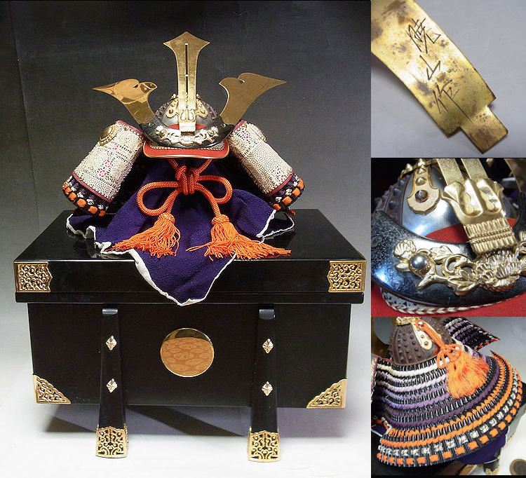 - ■江戸甲冑 暁山 兜 飾り 15号 大サイズ 45.5×52.5×33.5 鎧櫃入■五月人形刀剣刀装具