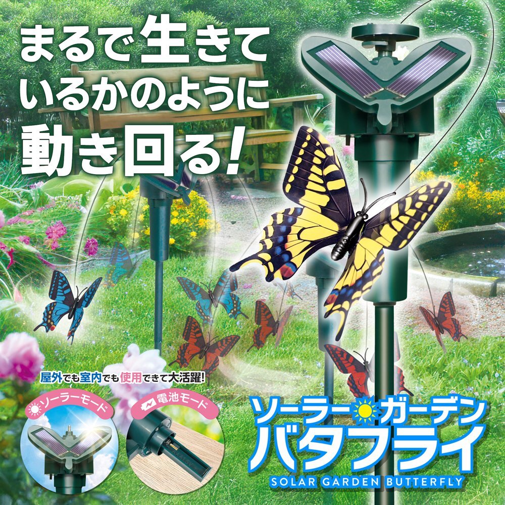 - ガーデンソーラー 蝶々 リアル 2電源 ソーラーパネル 電池 ガーデニング 庭 装飾 バタフライ 送料無料 150T◇ ガーデンHRN:バタフライ