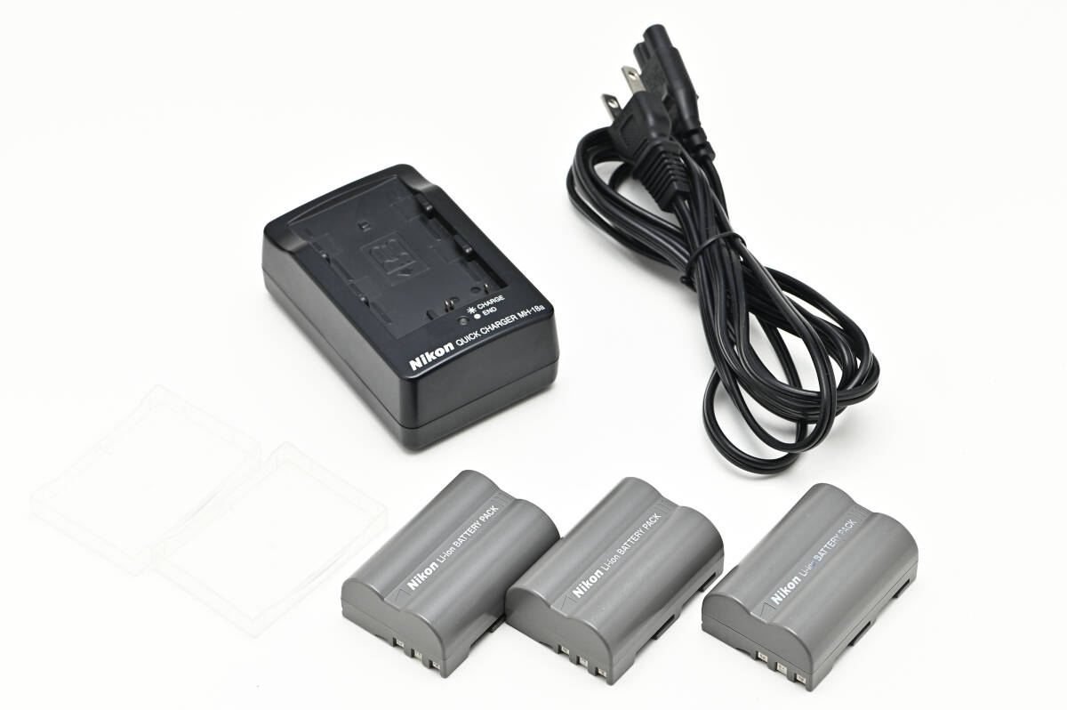 - 【純正品】中古 ●Li-ionリチャージャブルバッテリー EN-EL3e(3個) ●ニコンデジタルカメラ用クイックチャージャーMH-18