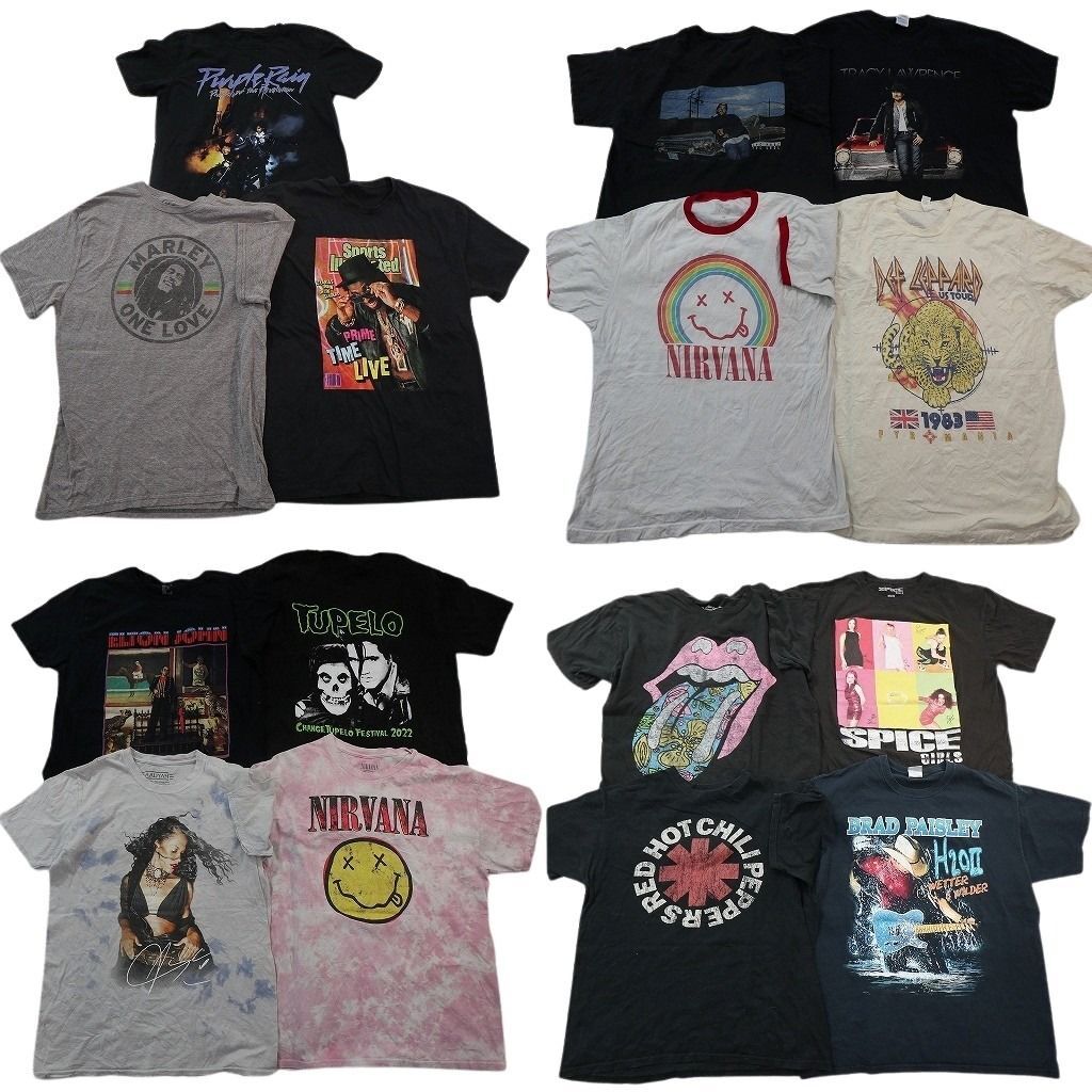 > 古着卸 まとめ売り 音楽・バンド 半袖Tシャツ 15枚セット (メンズ M /L ) ローリングストーンズ レッチリ ニルヴァーナ 人物 中古 NE2763