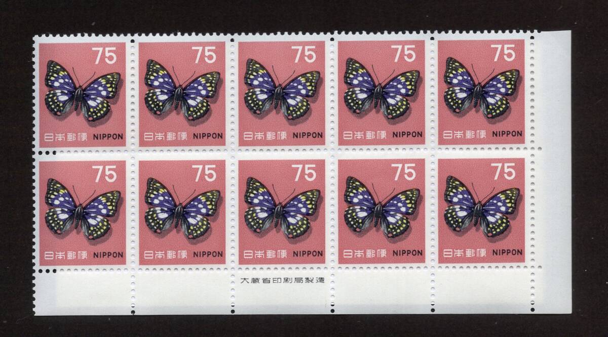 - [おおむらさき 75円] 銘版付き(大蔵省印刷局)10枚ブロック/未使用