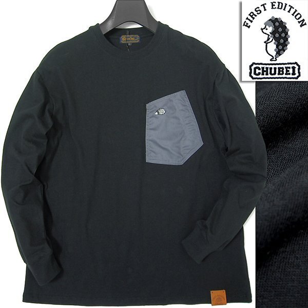 - 新品 チュウベイ パネルポケット 刺繍 カットソー LL 黒 【CH1451089_99_LL】 CHUBEI 春夏 メンズ 長袖 Tシャツ 綿100% ハリネズミ ロンT
