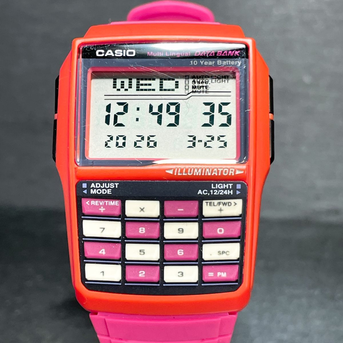 - 新品 CASIO カシオ DATA BANK データバンク DBC-32C-4JF 腕時計 デジタル クオーツ 多機能 カレンダー ラバーバンド ピンク 動作確認済み