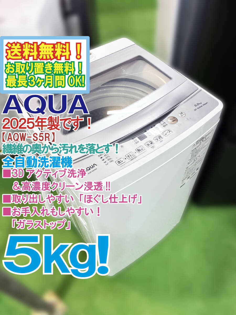 > 送料無料★2025年製★極上超美品 中古★AQUA 5㎏ 3Dアクティブ洗浄&高濃度クリーン浸透!!ガラストップ 洗濯機【AQW-S5R】GEVA
