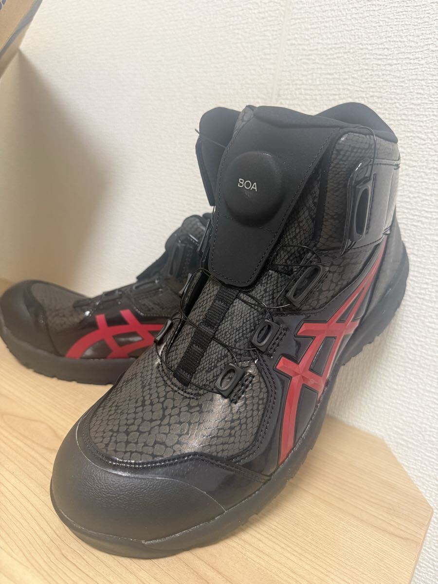 - アシックス 安全靴 CP304 BOA ウィンジョブ ブラック×クランベリー 27.5㎝