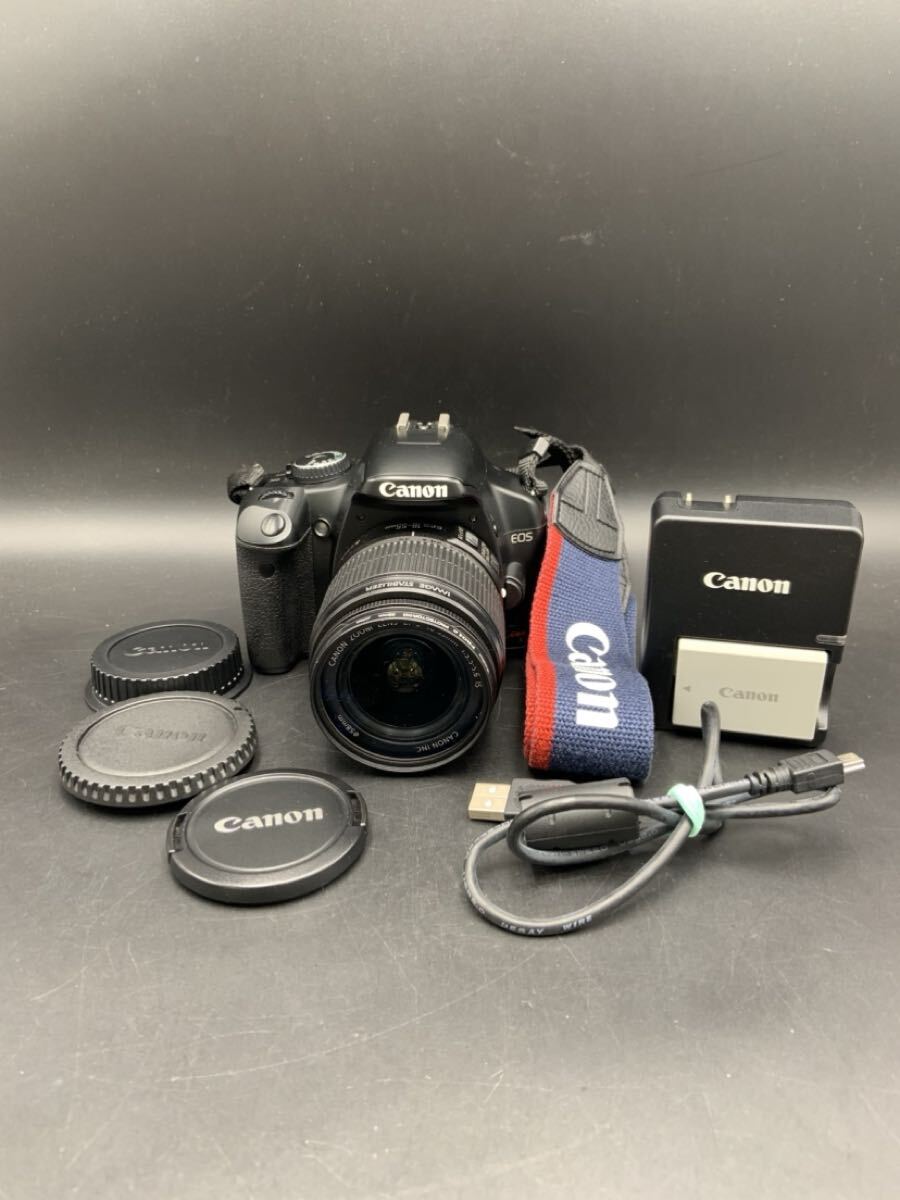 - 川端 4月 NO.35 Canon キャノン デジタル一眼レフカメラ EOS ブラック レンズ 18-55m 汚れあり 通電動作確認済 DS126181