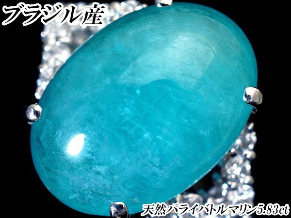 - 1円~【ジュエリー極】CGL鑑 極上品 ブラジル産 極上天然パライバトルマリン5.83ct&ダイヤ0.23ct 超高級Pt900リング k1655vim【送料無料】