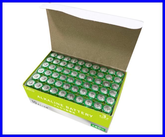 - ゆうパケット無料!LAZOS 単3 アルカリ乾電池 60本 10本入×6パック 単三電池 ・ B-LA-T3X10