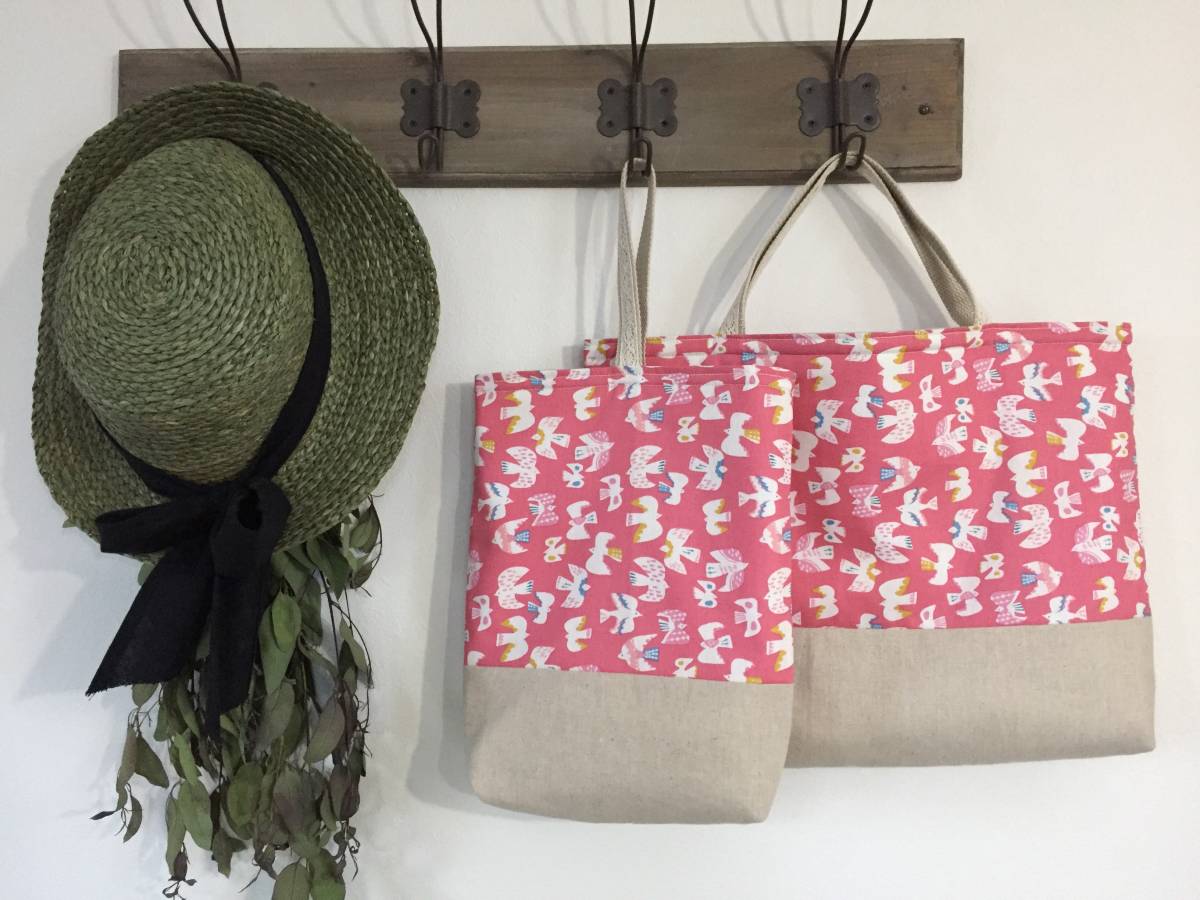 - ハンドメイド レッスンバッグ シューズバッグ 北欧柄 鳥 入園 入学 女の子