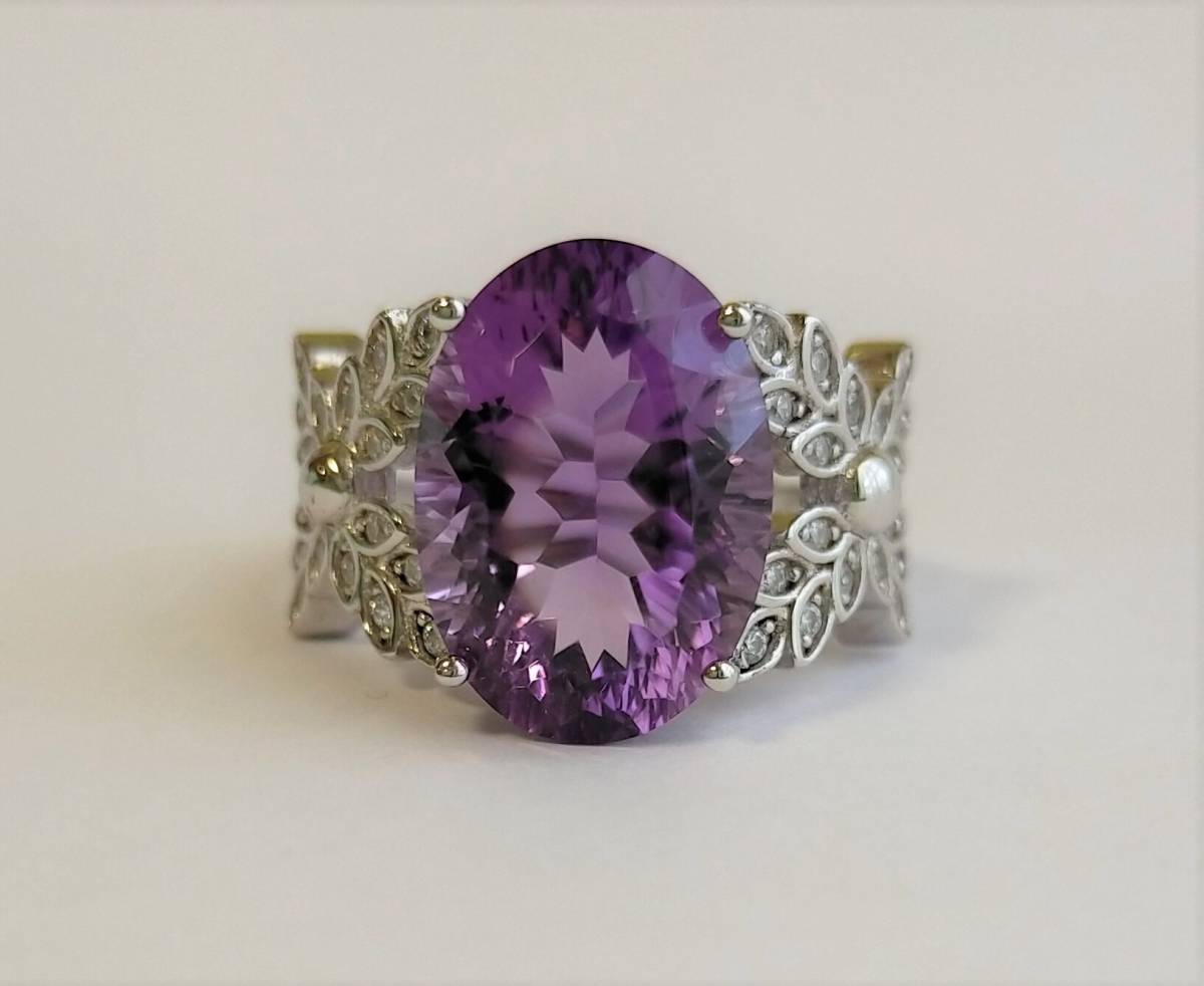 - アメジスト リング 指輪 シルバー 925 パワーストーン 紫水晶 天然 アメシスト シルバーリング 大粒