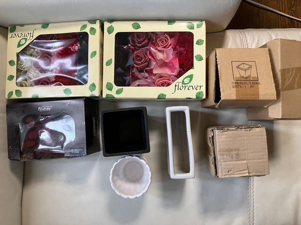 - メ3859 大地農園他 プリザーブドフラワー花材 3箱&花瓶3個
