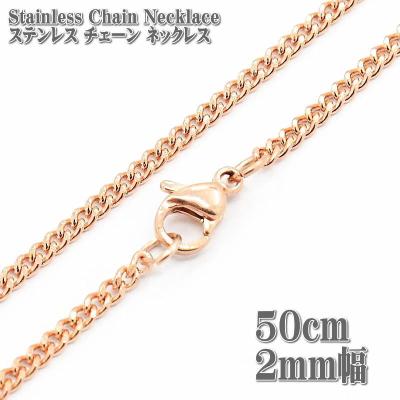 - ステンレスネックレス キヘイチェーン 約50cm 2mm幅 ネックレス ステンレス チェーン 喜平 縁石 キヘイ ネックレス ピンクゴールド