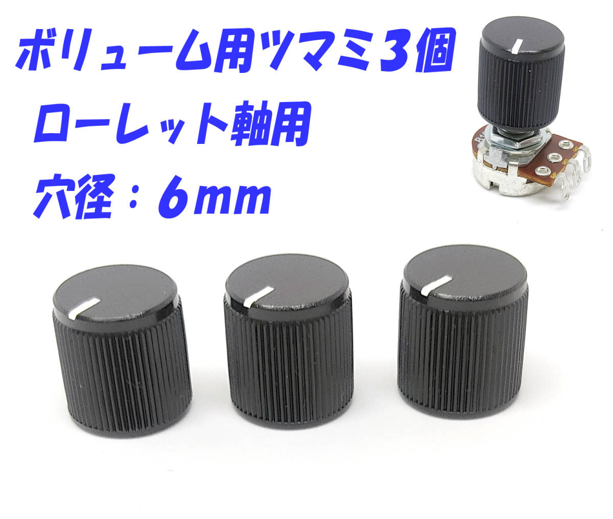 - 16mm 用 ボリューム つまみ 3個セット 小型(Φ16) 汎用ボリューム用 穴径 6mm 取り付け軸 ローレット仕様用 ツマミ ノブ 匿名送込