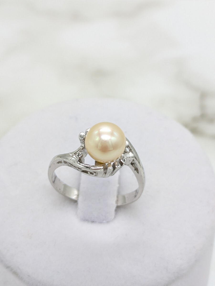 - ①あこや本真珠 パールリング 7.7mm 14.5号 アンティーク シルバー 普段遣い お祝い 田中真珠
