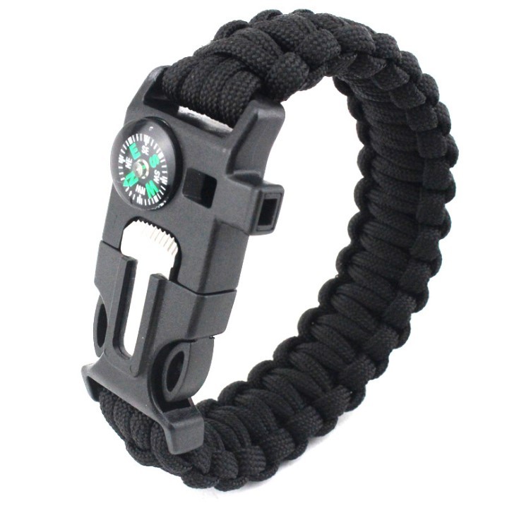 - サバイバルブレスレット ブラック 登山 ファイヤースターター コンパス パラコード アウトドア 安心 安全 遭難 災害 即納