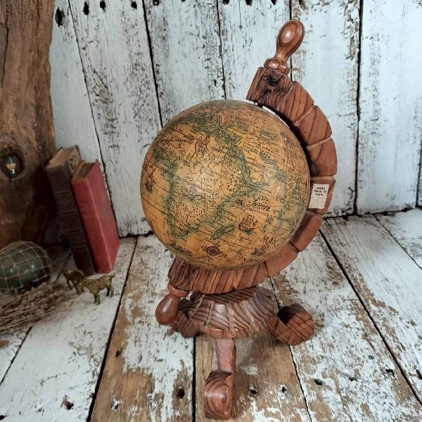 - スペイン ヴィンテージ 無垢材 ウッド グローブ 地球儀 H39cm 木製 木目 机上 オブジェ ビンテージ アンティーク 古道具