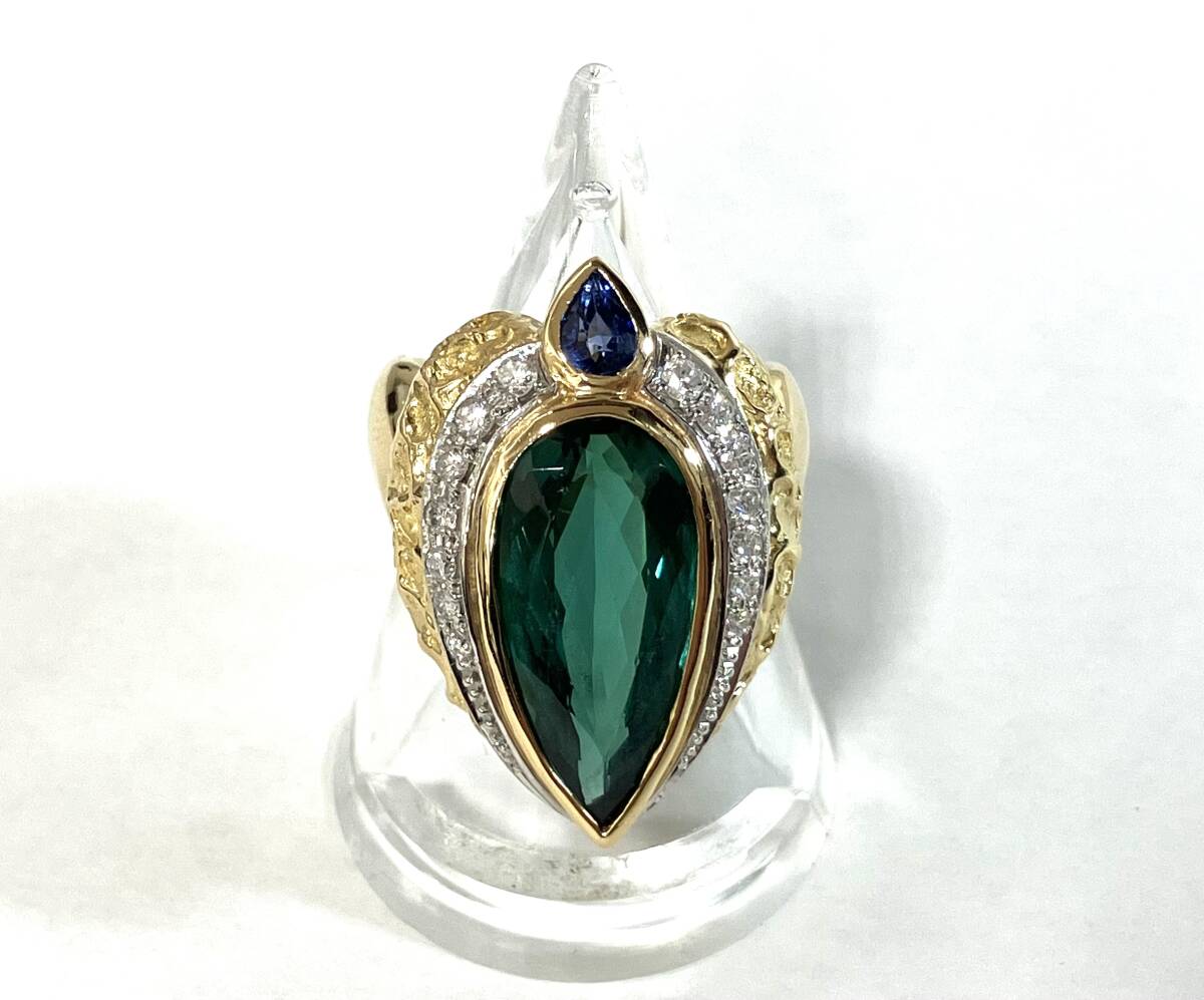 - K18/Pt900 グリーントルマリン D0.36ct #13 14.9g ゴールド プラチナ リング 指輪 鑑別書付