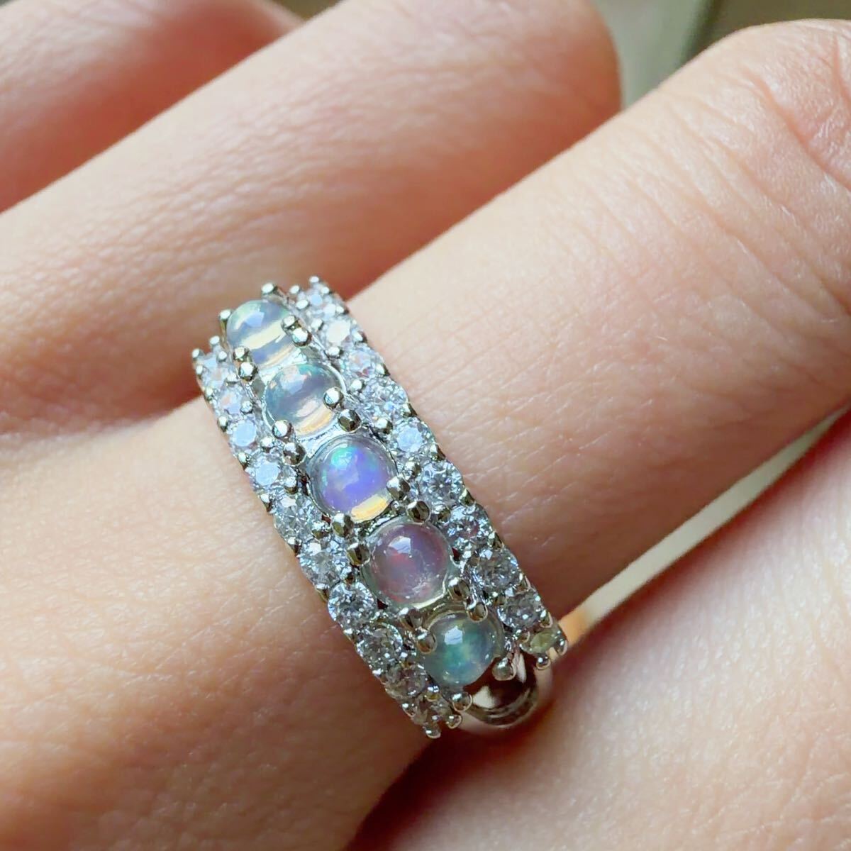 > ◇オパール(Opal)◇遊色効果が強め◇フリーサイズ◇リング◇指輪◇パワーストーン◇天然石◇巾着袋付き◇プレゼントにも044R20419