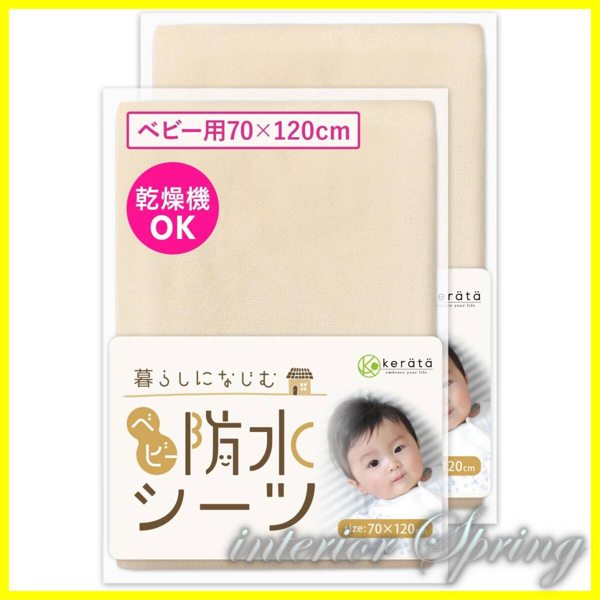 - ベージュ×ベージュ (l お昼寝布団 布団 ベッド (2枚セット) ミニ シーツ 赤ちゃん 子供 防ダニ 抗菌 70×120cm)