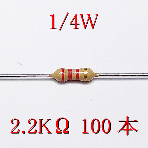 - カーボン抵抗【炭素被膜抵抗】 2.2KΩ (1/4W ±5%) 100本 #033E