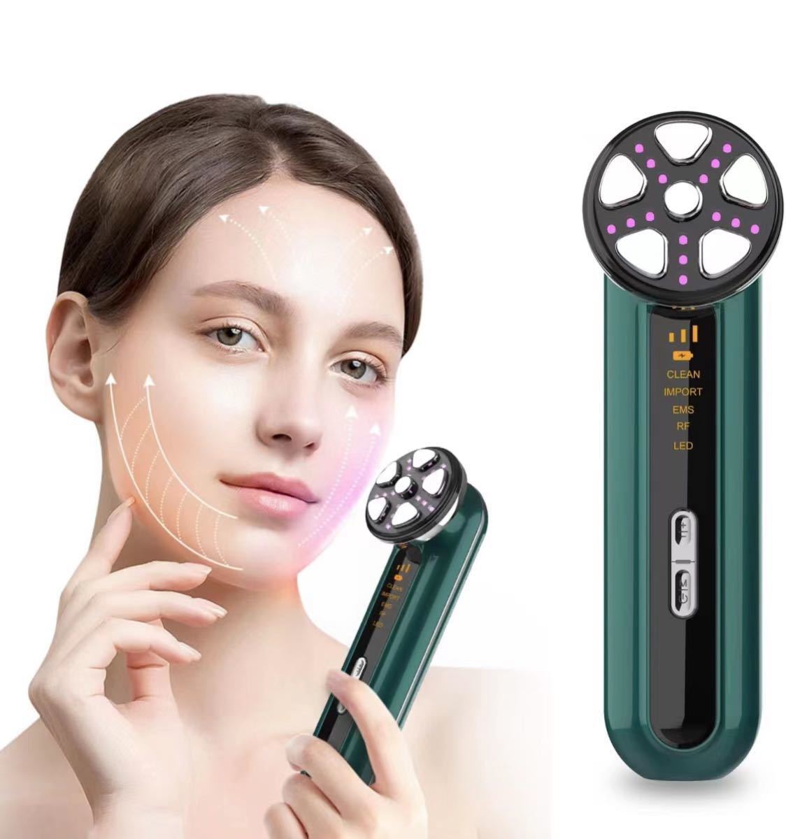 - ホワイト-RF美顔器 温熱振動 韓国ラジオ波造顔技術 EMS微電流 4色LED光 毛穴ケア 小顔 美容成分浸透を高め USB充電式 日本語説明書付き