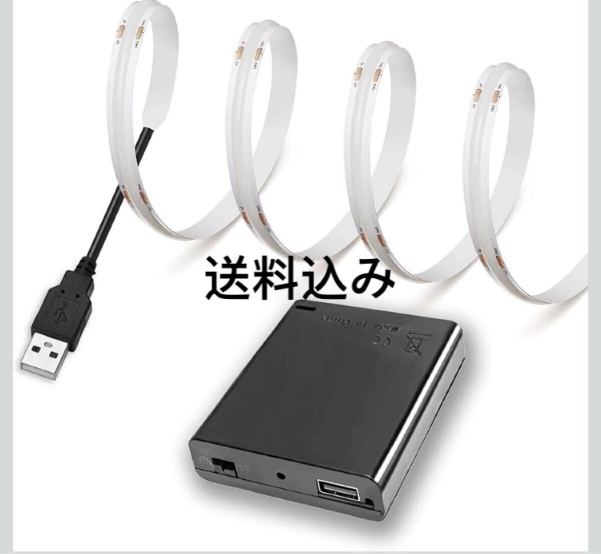- LEDストリップライト 0.5m COBテープライト DC5V 電池ボックス付き 高密度タイプ ブルー 両面テープ