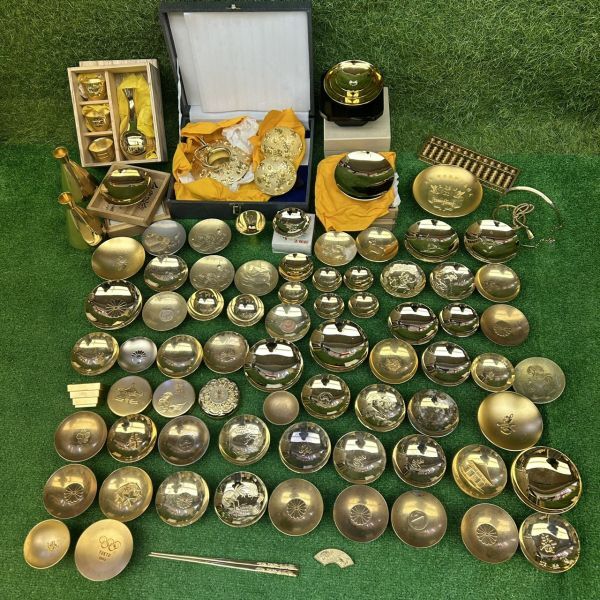 > 50 24KGP 金杯 など 約8キロまとめ 東京オリンピック 開催記念杯 干支 紋章 彫刻 酒器 徳利 盃セット 縁起物 大量 インテリア 雑貨 希少品