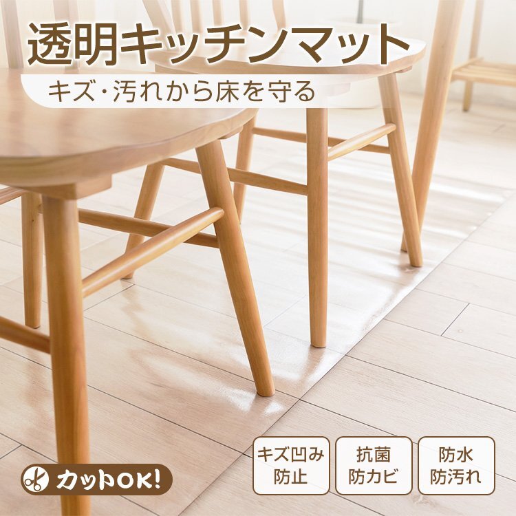 - 送料無料 キッチンマット 拭ける 透明 クリア おしゃれ 60×240 透明キッチンマット 撥水 洗える 台所マット PVC 厚さ1.5mm in036-60