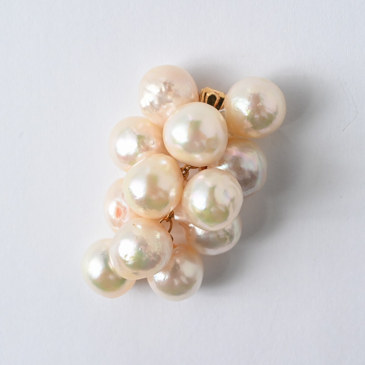- K18 パール 葡萄型 ペンダントトップ 総重量11.2g 金具込全長約30mm 真珠 金細工 アール・ヌーヴォー 骨董 古美術 古玩 アンティーク