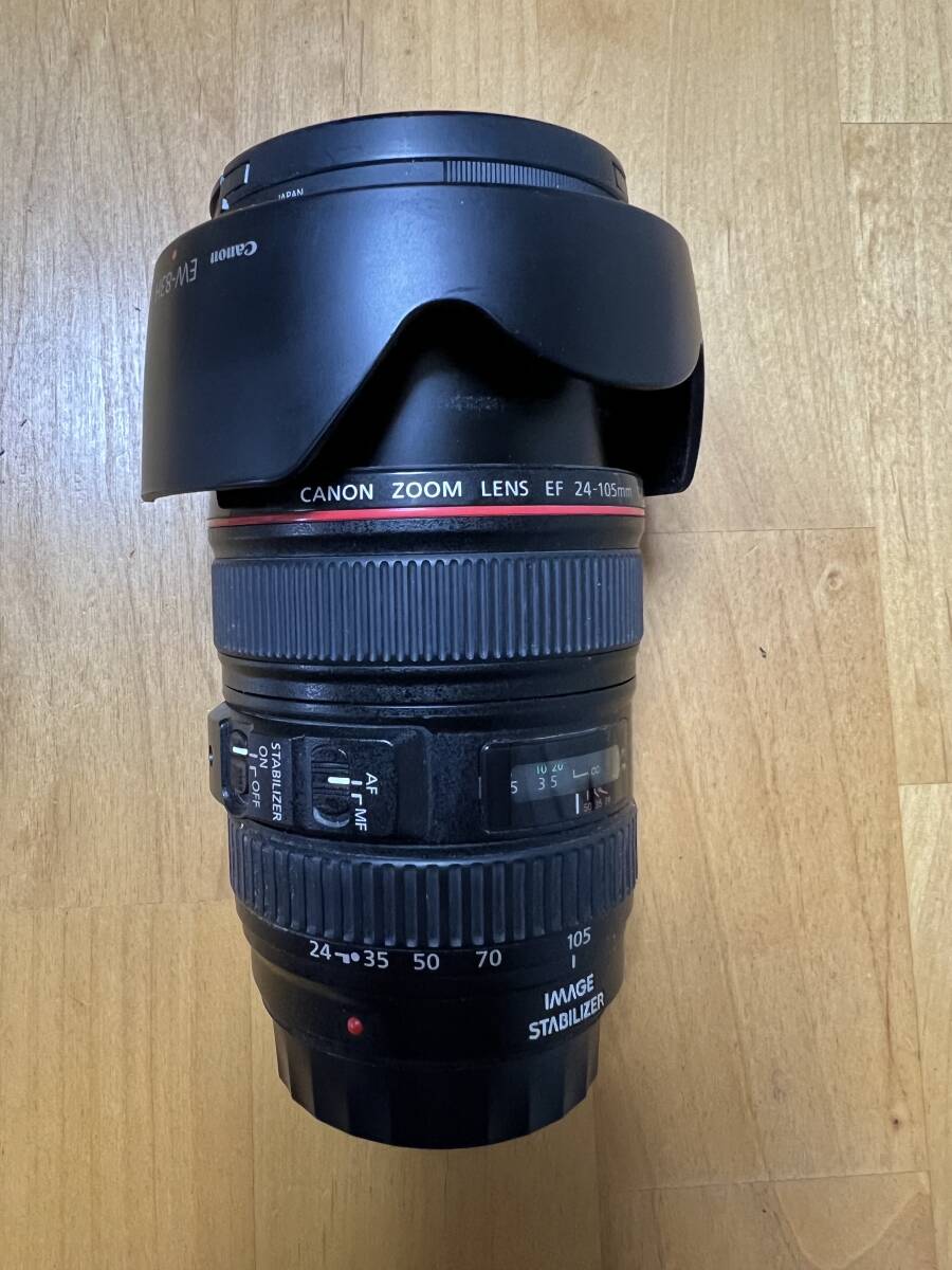- 【送料無料】 Canon EF24-105mm F4L IS USM + Kenkoプロテクター + フードセット 動作良好
