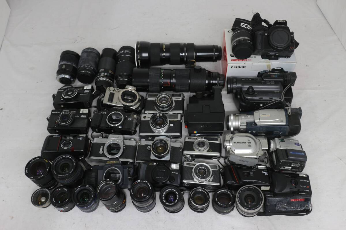 - 【送料無料】1円〜 蔵出し 大量 カメラ ビデオ まとめ Canon MINOLTA KONICA 一眼レフ コンパクト フィルム レンズ 動作未確認 現状品 M778