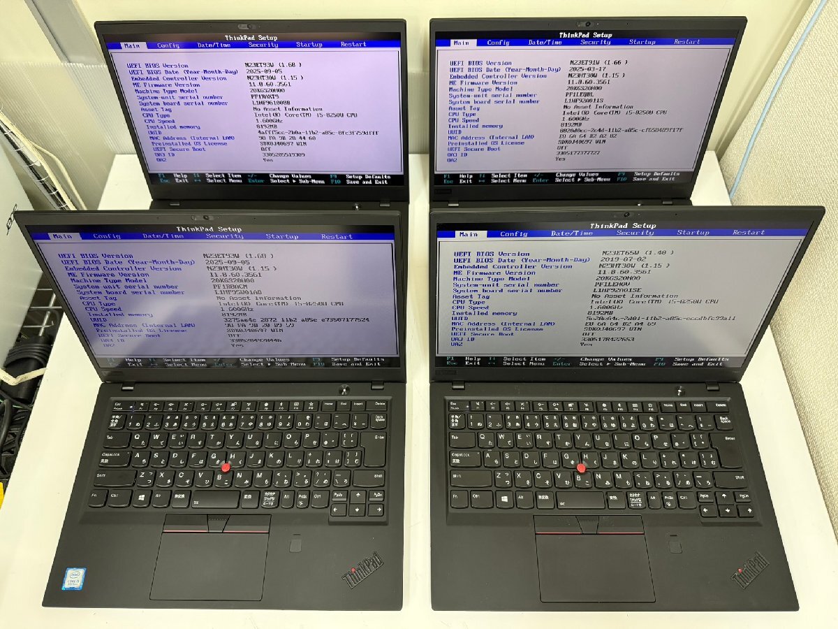 - 【4台セット/UEFI起動確認済】ThinkPad X1 Carbon [TYPE 20KG-S20H00] (Core i5-8250U, RAM8GB, SSD無し)本体&ACアダプタ