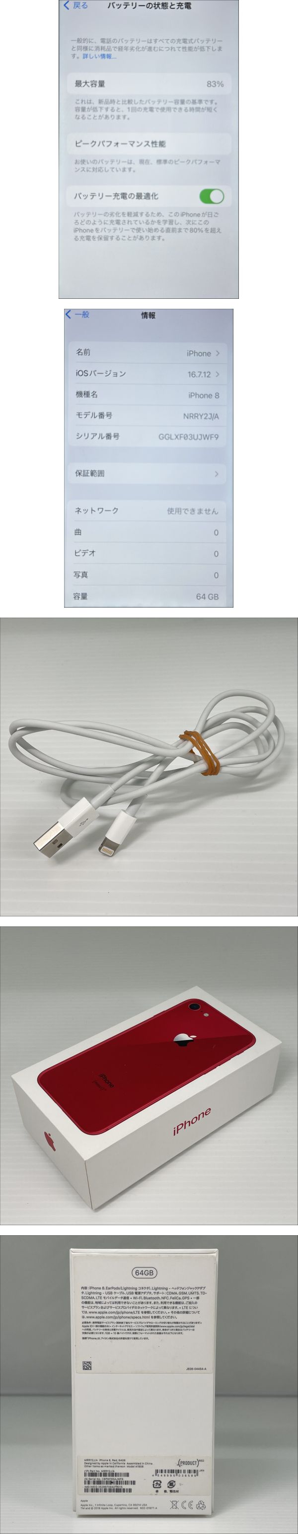 - 2603M4203 Apple アップル iPhone8 NRRY2J/A 64GB IMEI Softbank系:〇判定 SIMロック有 通電確認済 箱付 プロダクトレッド