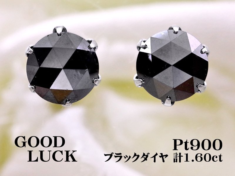 - 【新品・未使用】1円~最落無 天然ブラックダイヤモンド 計1.60ct,プラチナ シャープな煌き ローズカット ブラックダイヤ スタッドピアス