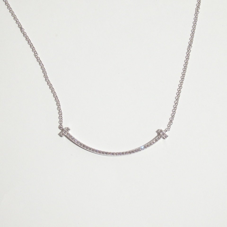 - R8313P ▼TIFFANY&Co. ティファニー▼ Tスマイル ペンダント スモール ダイヤモンド 750/K18 ホワイトゴールド / ネックレス K18WG mks