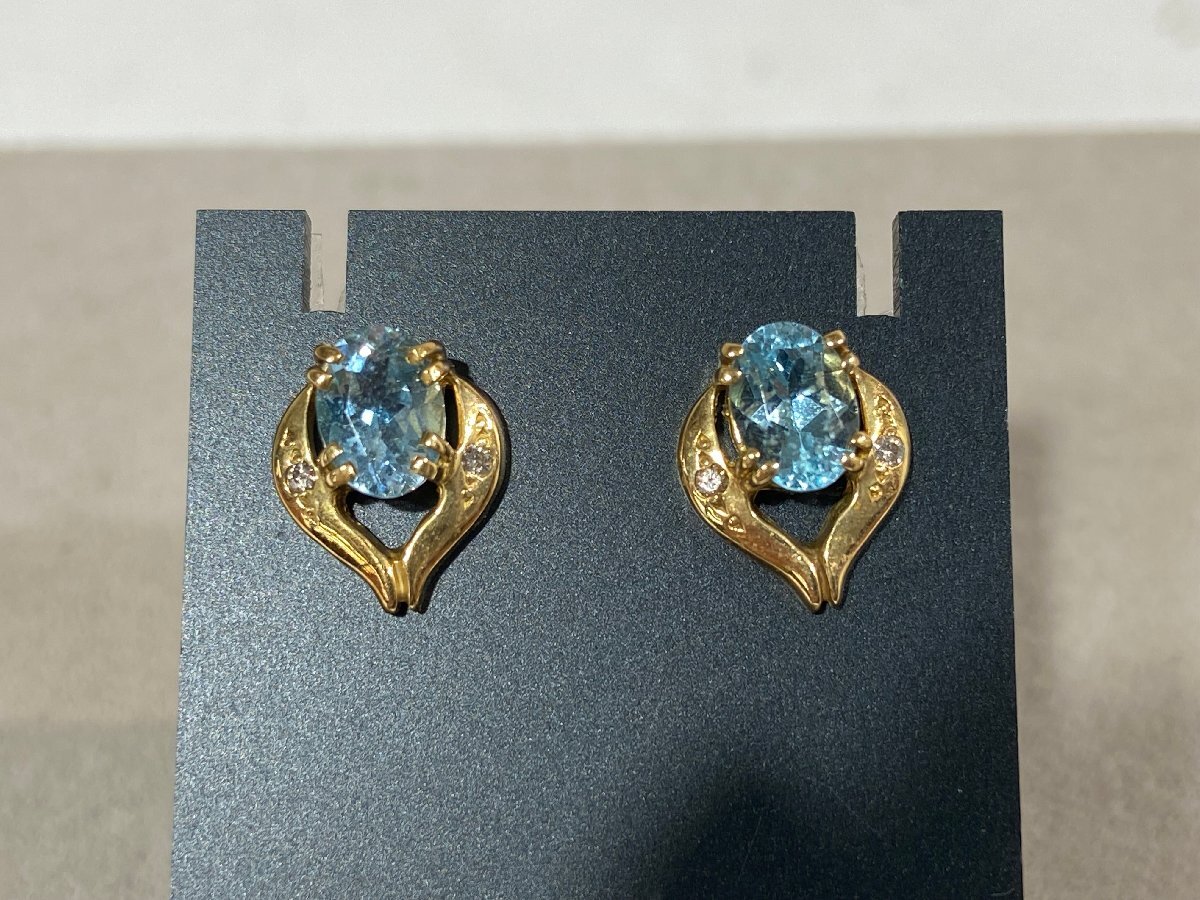 - 【ピアス】♪ ジュエリーマキ K18 18金 イエローゴールド ブルートパーズ様石1pcs メレダイヤ0.02ct×2 約3.1g SY02-147◎