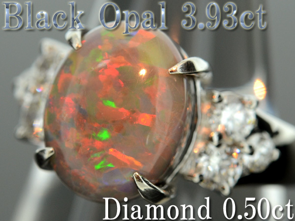 - 【BSJJ】Pt900 ブラックオパール3.93ct ダイヤモンド0.50ct リング プラチナ 宝石鑑別書 日本彩珠宝石研究所 約8.5号 本物