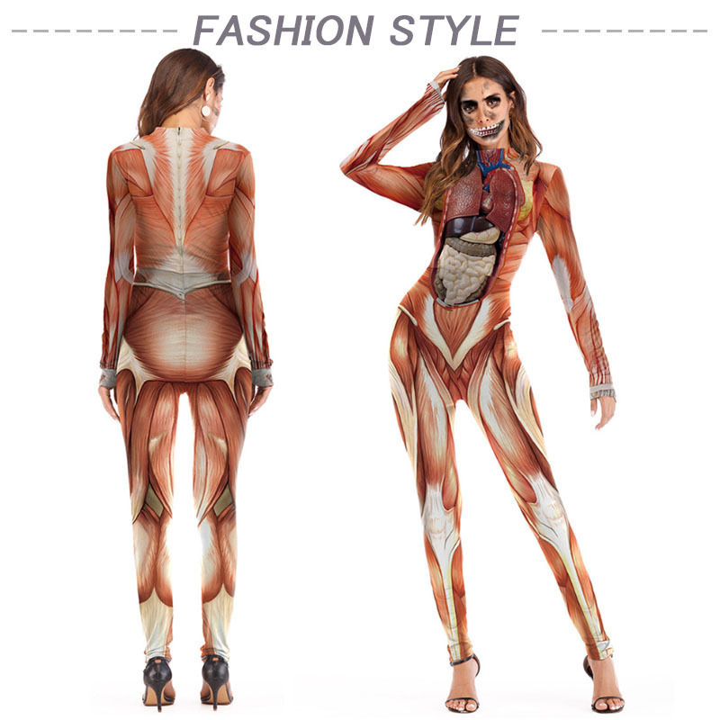 - レディース メンズ ハロウィン仮装 イブニングドレス コスプレ衣装 独創的 夜会服 ロング コスチューム 人体構造図 長袖 男女むけ